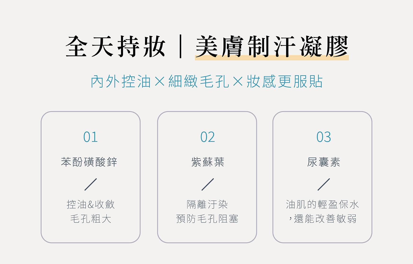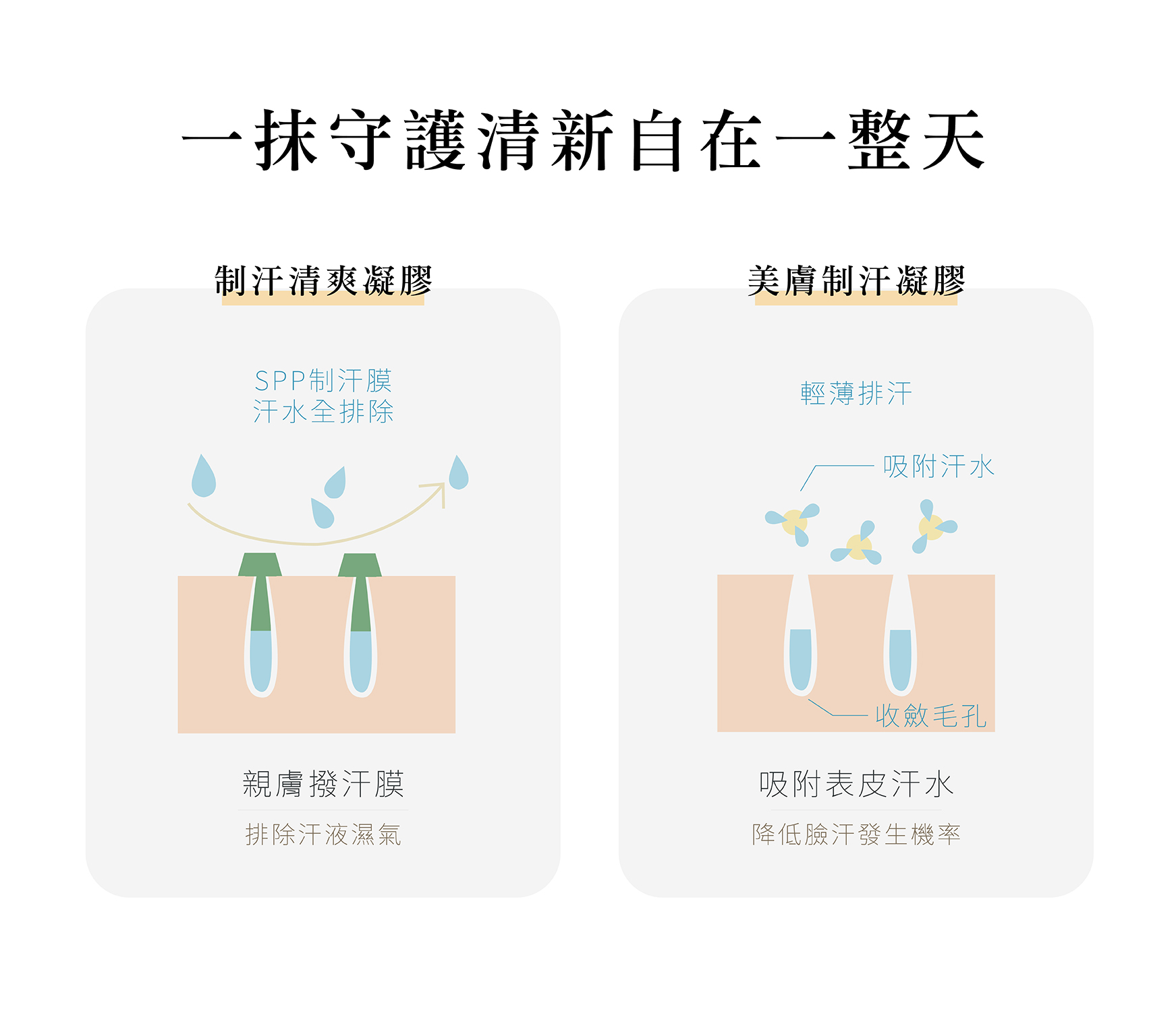 I. 使用部位:針對人中、髮際線、如額頭、臉頰、鼻翼兩側、人中等處做塗抹。 ※頭皮或是黏膜處不建議塗抹喔。 II. 使用時機:可視出汗情況於妝前、妝後加強塗抹於易出汗處。 III. 使用方式: 洗臉-保養品-美膚制汗-防曬-上妝 於臉部清潔後取1-2cm大小,均勻塗抹欲改善的地方直到完整吸收 ※即使臉部出汗量大,也不建議使用止汗濃度較高的【制汗清爽凝膠】塗抹於臉部,以免過度刺激。