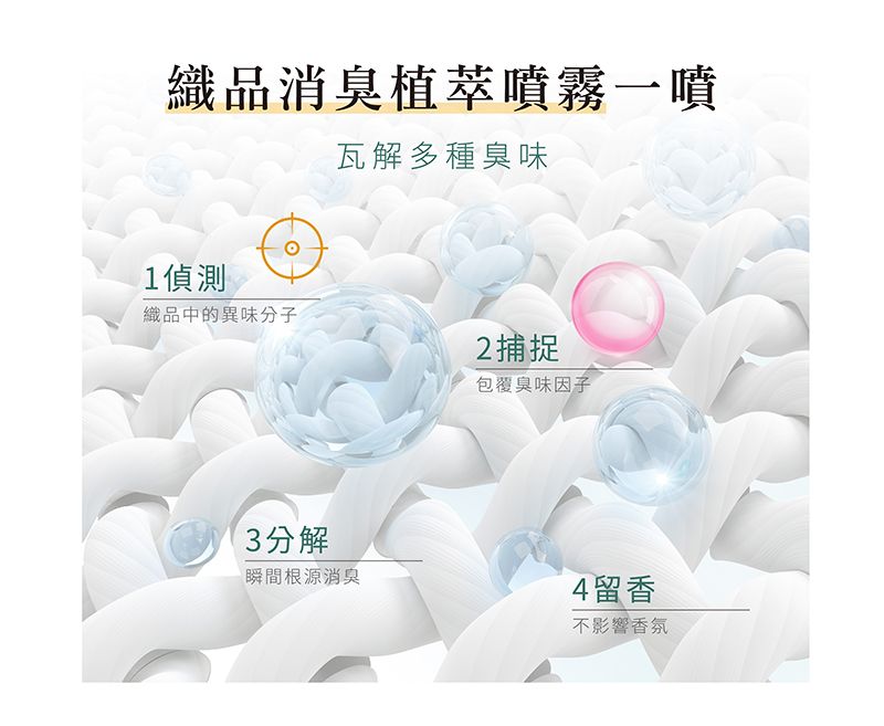 織品香臭植萃噴霧可以達到消臭、除菌的功能,比起舊款更升級留香功能,因此當你噴完織品消臭噴霧後,內含成分不僅無香氛、除臭配方也不會蓋掉香水味外,相反的還能讓你得身上的香水味更持久!