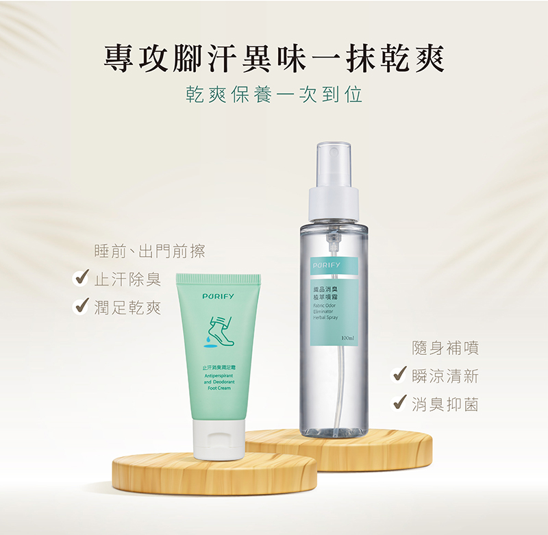 止汗消臭潤足霜30ml+織品消臭植萃噴霧100ml