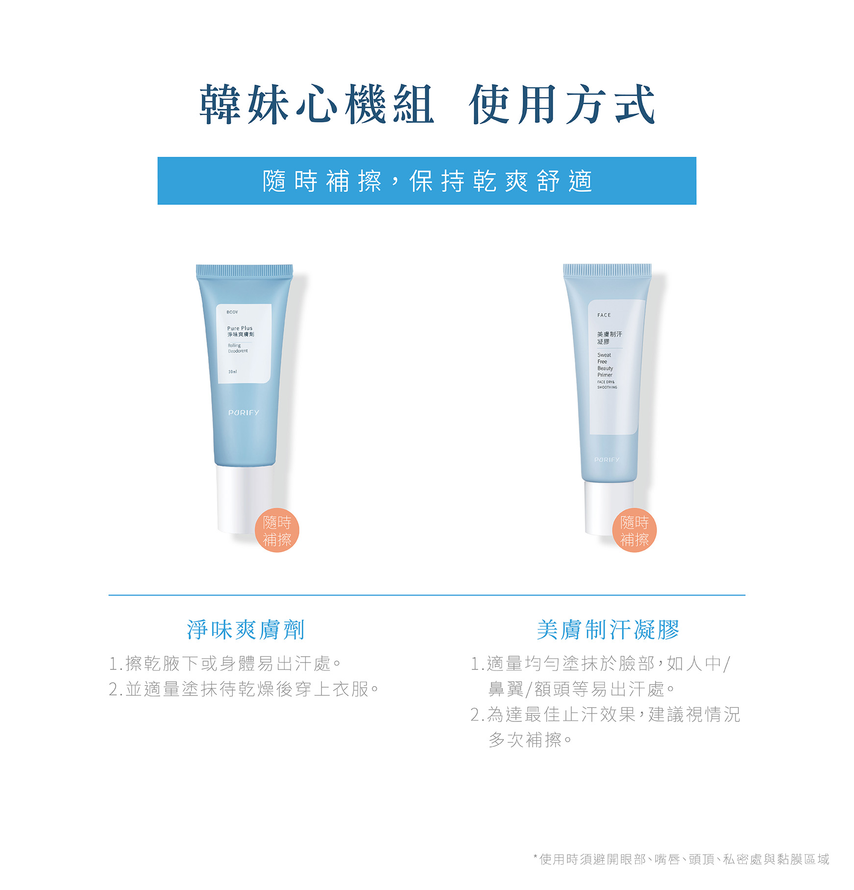 使用部位:易出汗處。避開眼周、嘴唇、黏膜