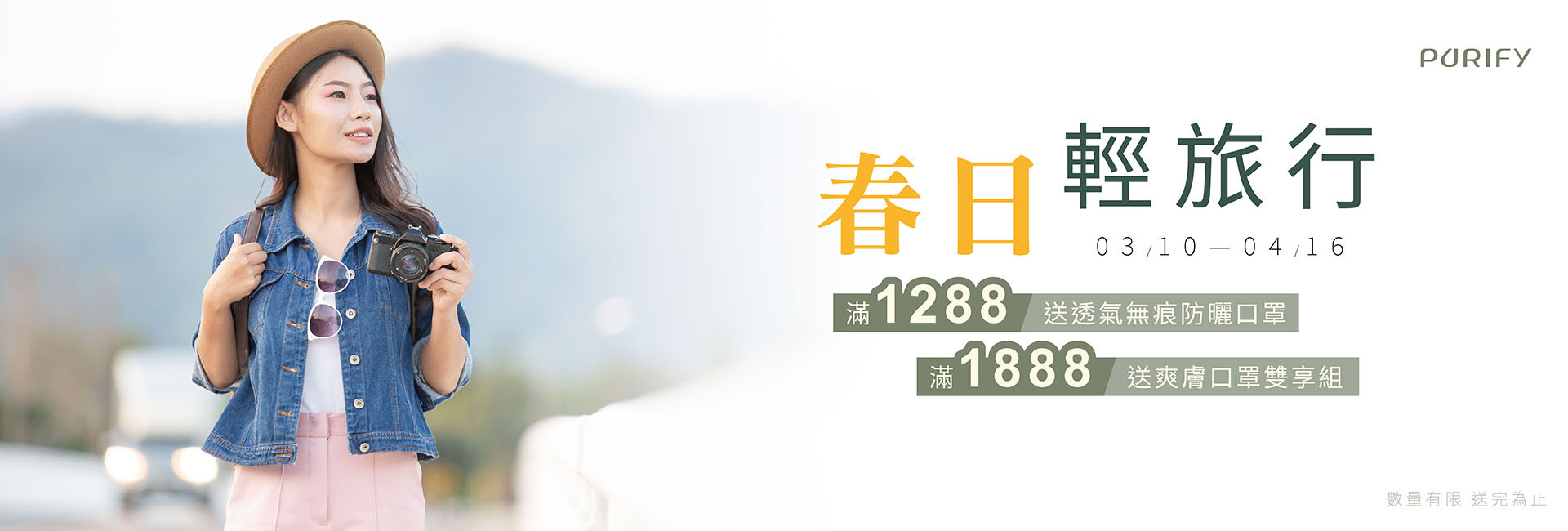 春日輕旅行|滿$1288送透氣無痕防曬口罩、滿$1888送爽膚口罩雙享組