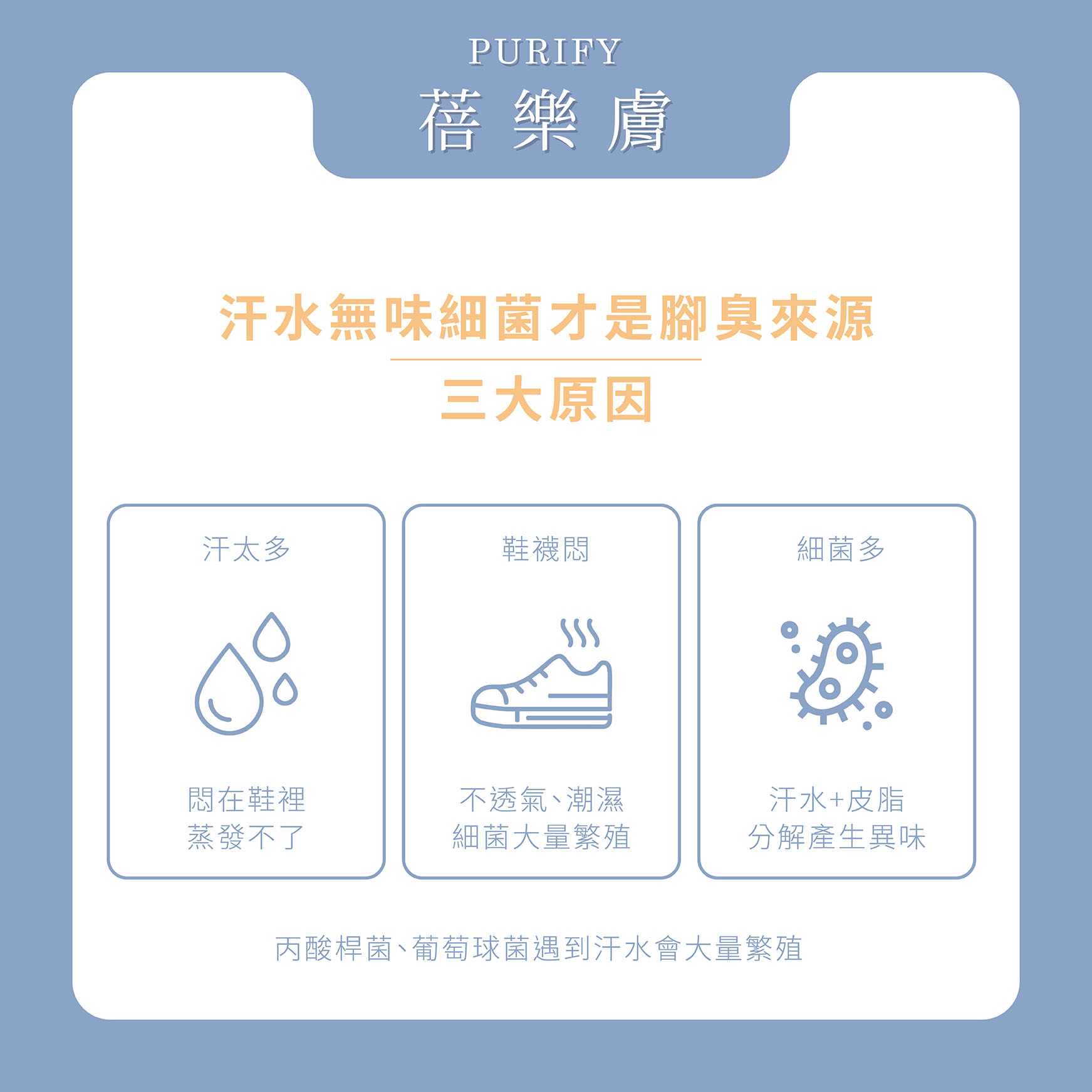 為什麼會腳臭?主要是這三個原因造成的:汗水、細菌、鞋襪