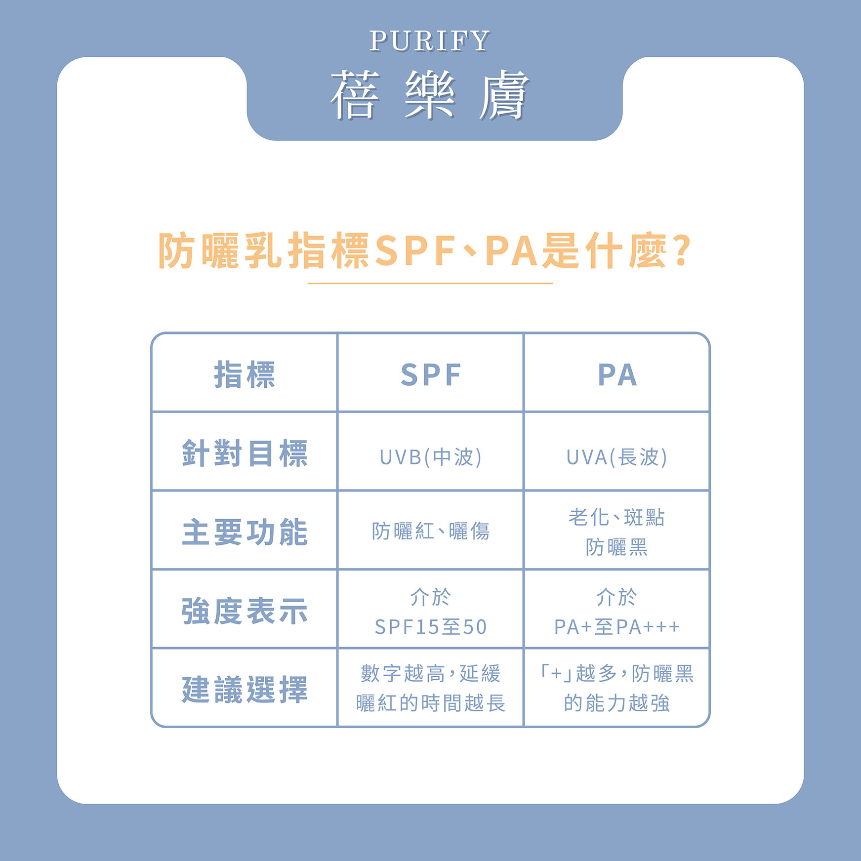 指標 | SPF、部分有PA | SPF+PA/PPD、標示Broad Spectrum |