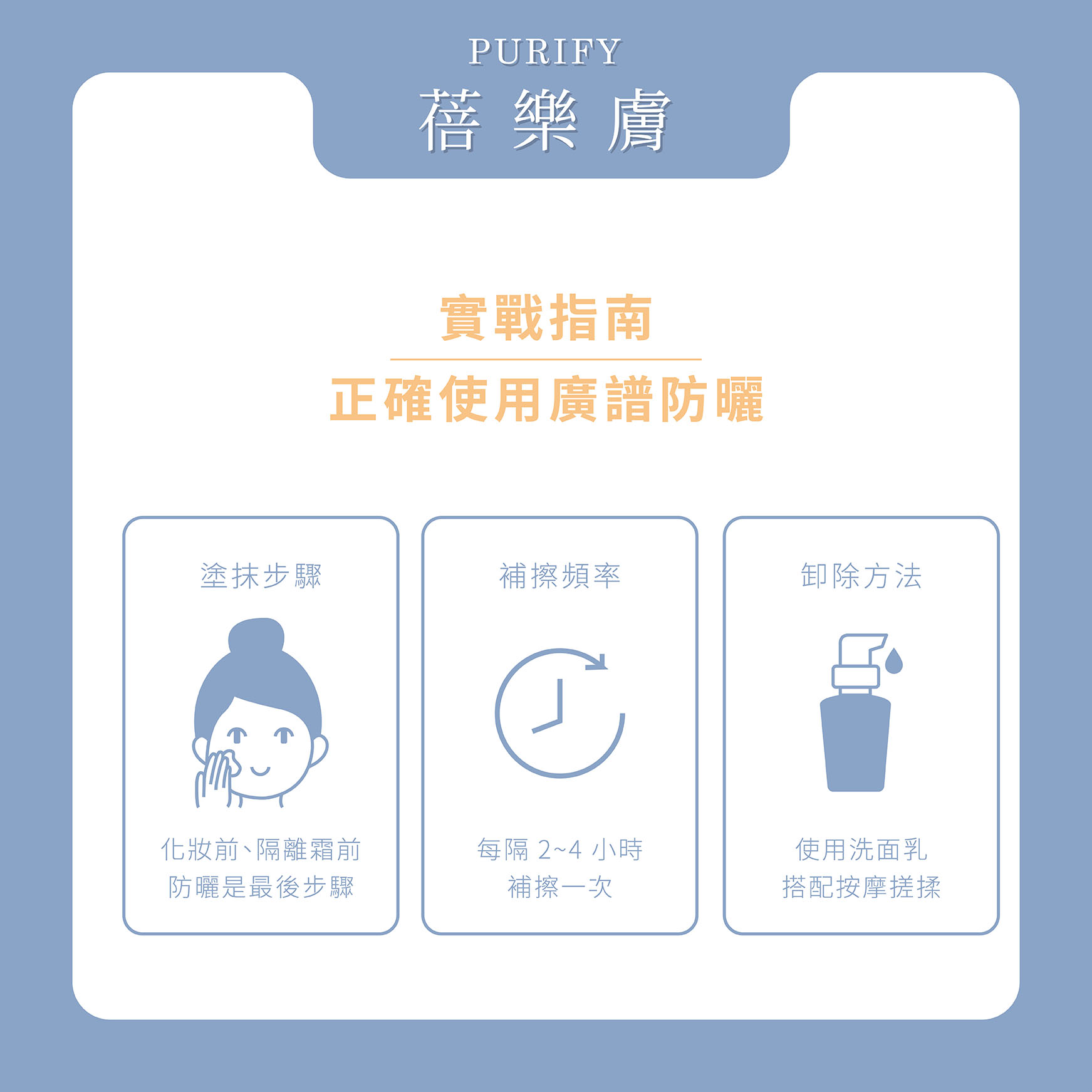 防曬必須是保養的最後一道步驟,位於化妝前或隔離霜之前