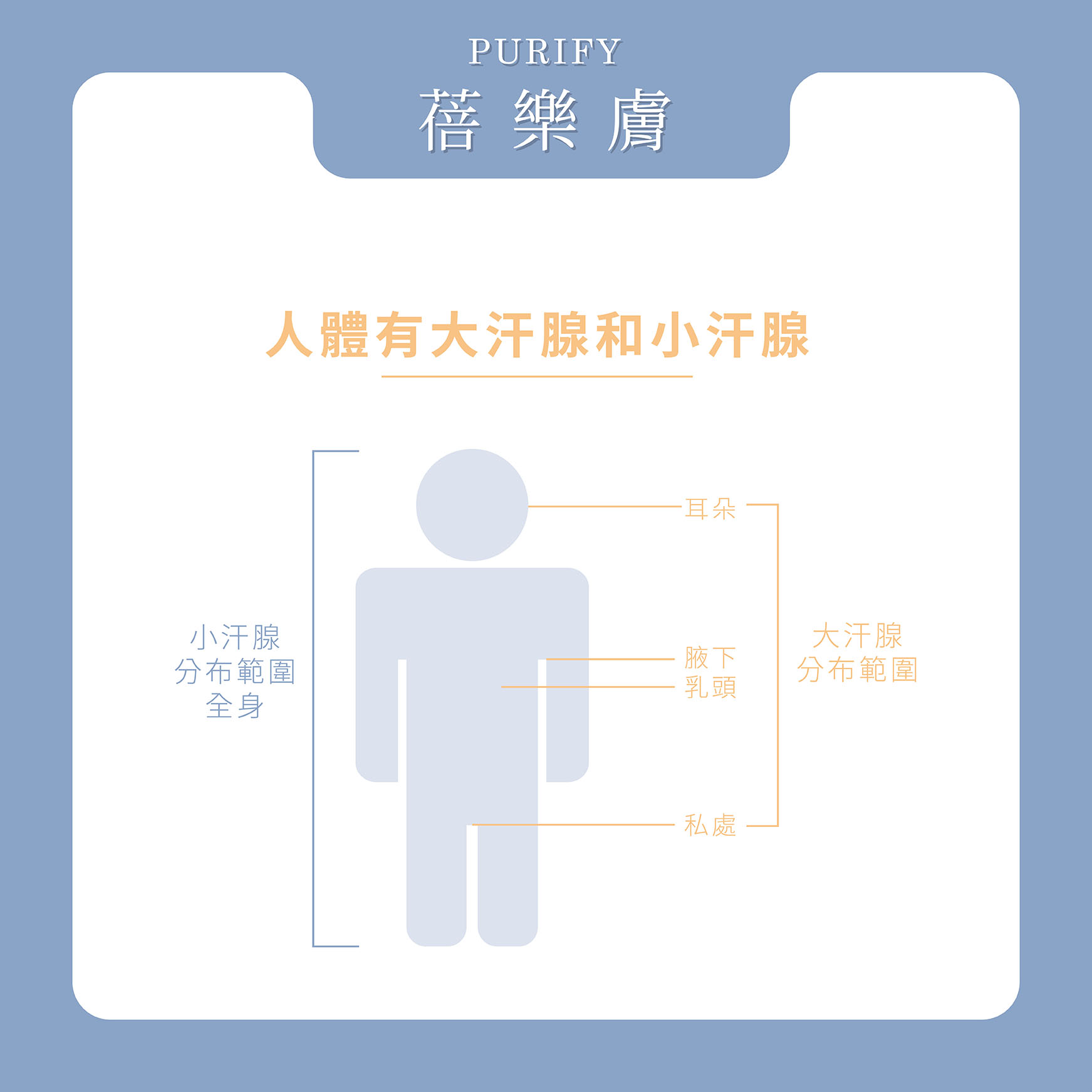 其中小汗腺分布於全身大部分皮膚,在手掌、足底、前胸、額頭等地方,一般來說,若是遇到體溫上升時,人的正常生理反應分泌汗水,就像是我們人體的恆溫空調,是我們人體調節體溫及代謝廢物的必要機制。