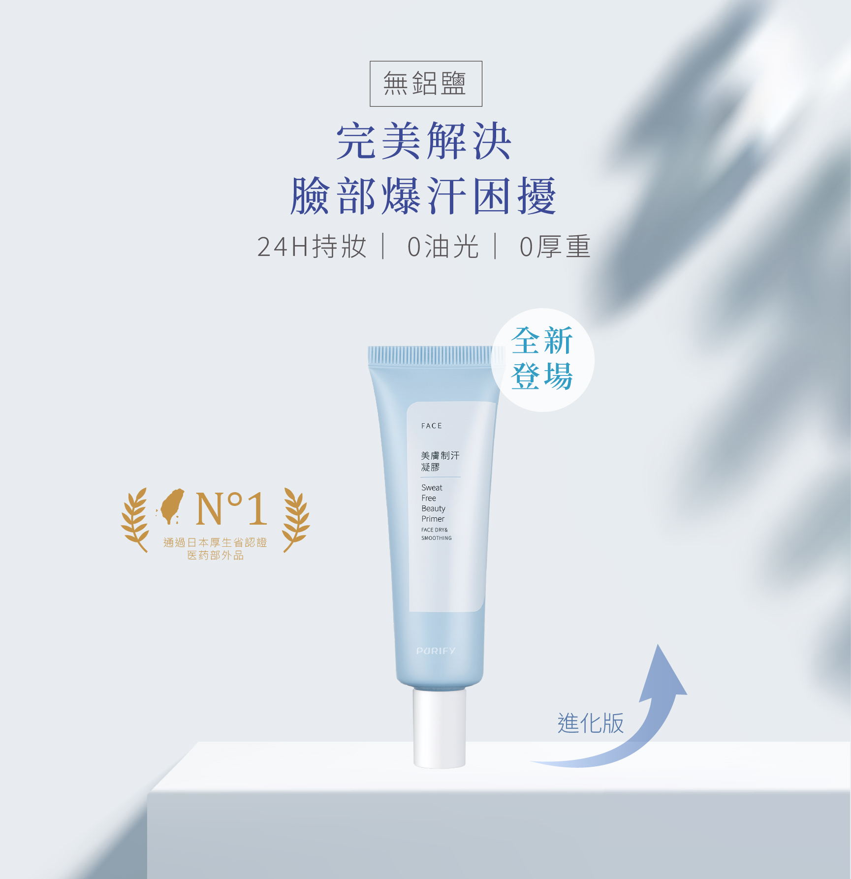 新上市的美膚制汗凝膠是採用的新型止汗技術,採用苯酚磺酸鋅吸附汗水、收斂毛孔,達到降低出汗與出油效果,無添加鋁鹽使用上更簡單方便,出門前後都可隨時補擦,達到更好的持妝效果。
