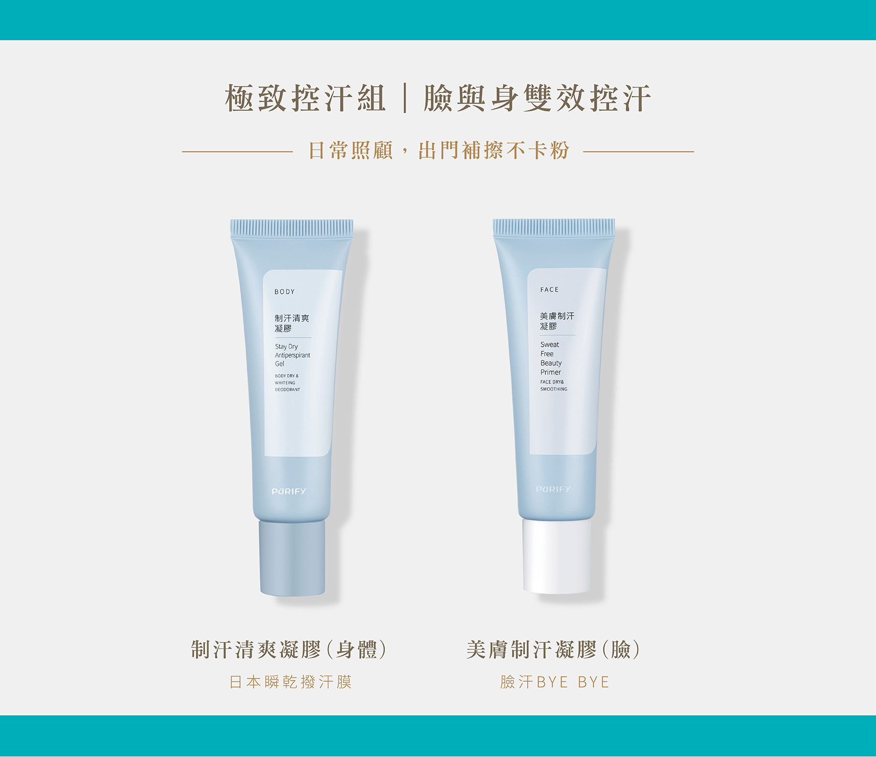 1. 身體用【制汗清爽凝膠】:需於身體洗淨後,在無出汗的情況下塗抹,一天最多兩次即可,多擦無異。身體因出汗量較大,採用德國百年藥廠止汗成分,符合國家安全法規鋁鹽Aluminum Chlorohydrate。 I. 使用部位:針對腋下、背部、胸部、手心、腳底 II. 使用時機:建議每日清潔後於「睡前」、「早上起床」一天最多兩次即可哦。 III. 使用方式:先清潔欲止汗的身體部位,一定要在乾爽狀態下塗抹才有用喔,待確認已完全乾燥後,在取1-2cm大小,均勻塗抹直到完整吸收 ※TIP:尤其又以洗澡後,提前一夜塗抹可達最高效果。若遇到臨時出門的情況,建議可以提早30-60分使用。 ※手腳汗因汗腺豐富,屬於最容易出汗處,建議可以搭配【乾爽止汗護手霜】、【止汗消臭潤足霜】隨時補擦加強控汗,才能達到最佳效果喔!