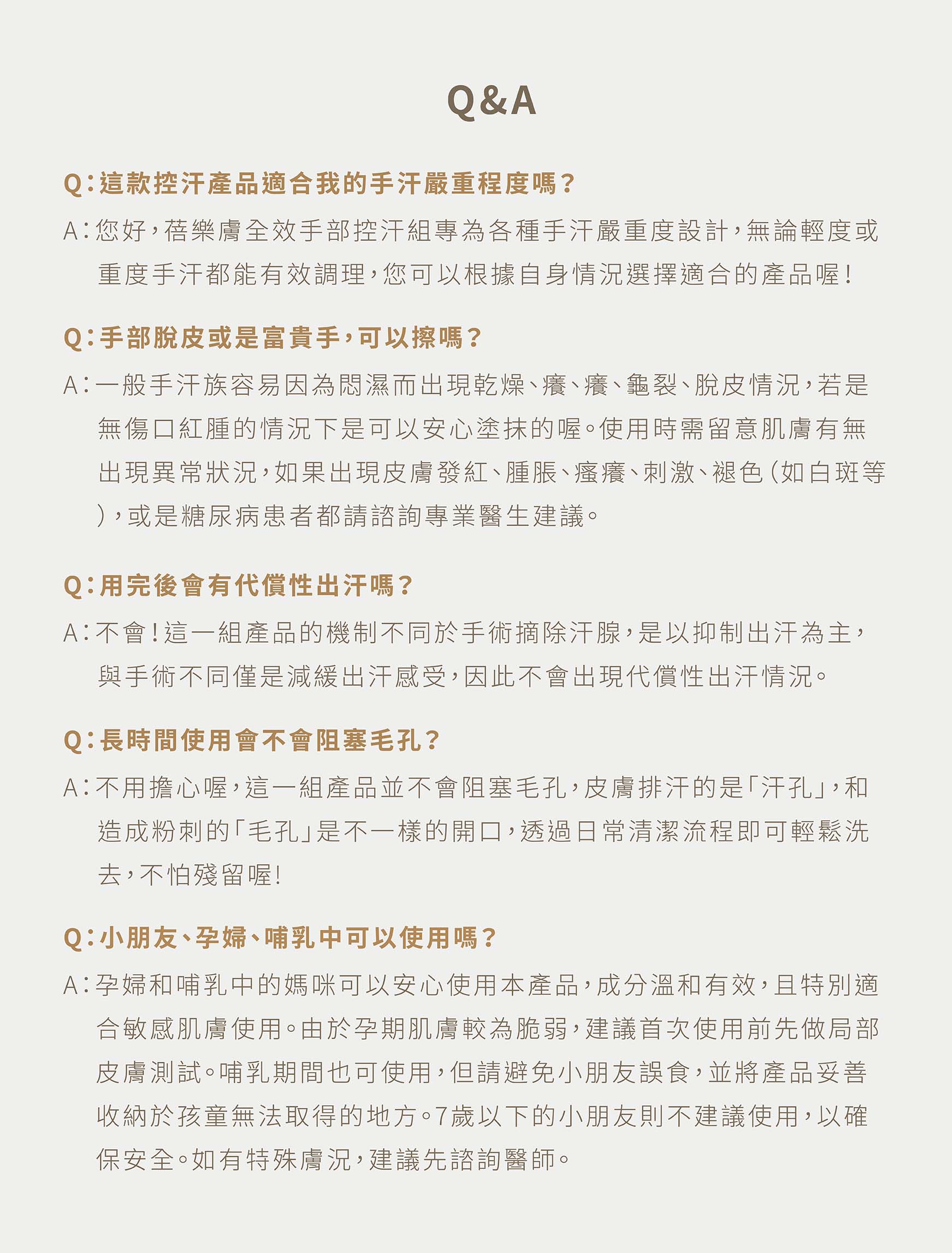 Q6. 我是手部多汗族,該如何搭配乾爽止汗護手霜做塗抹?如何搭配蓓樂膚其他產品能讓手部更乾爽呢?